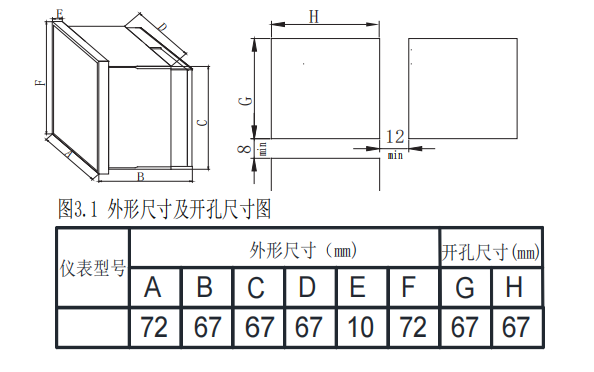 PA6000-24M智能手操器的外形尺寸及開孔尺寸圖見3.1