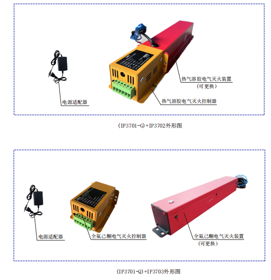 電氣滅火控制器通過內(nèi)部火災(zāi)探測傳感器,監(jiān)測配電系統(tǒng)中的線纜溫度、空間環(huán)境溫度、煙霧等有關(guān)電氣火災(zāi)隱患的信號,實現(xiàn)數(shù)據(jù)在線測量、采集、分析與控制功能,帶有RS485通信接口,用于連接主機(jī),并可選配LoRa-Mesh、4G無線通信接口。電氣滅火控制器共有熱氣溶膠和全氟己酮兩種方式,可根據(jù)不同需求選用。