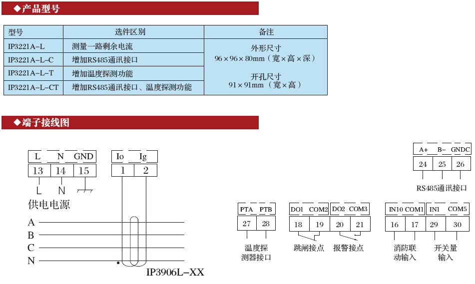 IP3221A-L系列電氣火災監(jiān)控探測器
