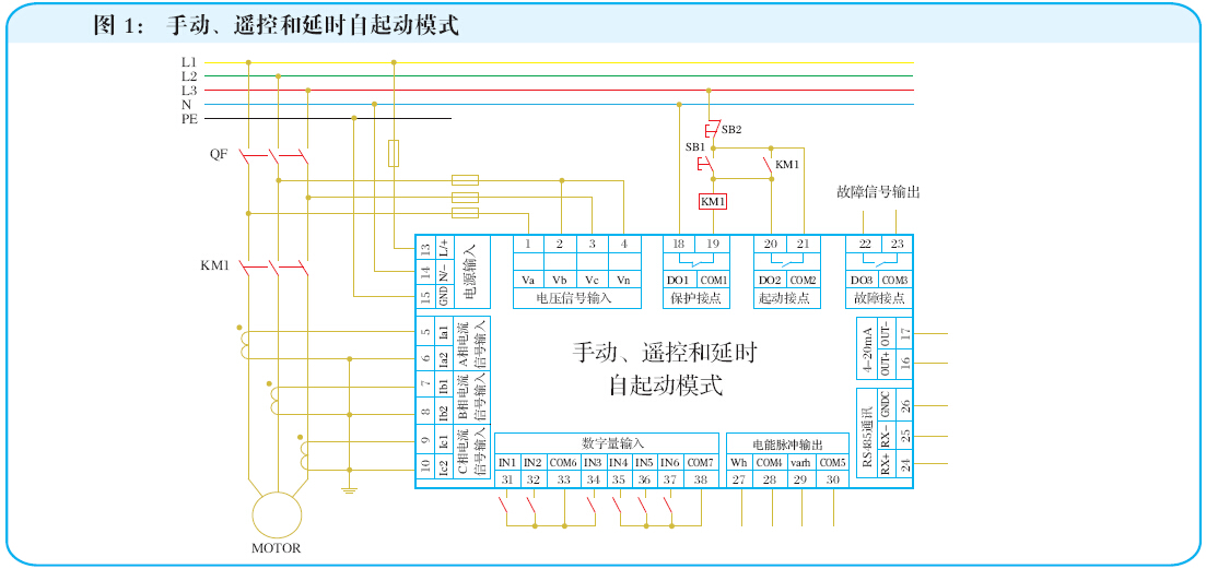 具有三組繼電器輸出,能滿足電機直接起動、來電延時自起動、遠方遙控起停、保護停機等,任意設定來電延時自起動時間(0~99.9秒),可實現電機分批起動。